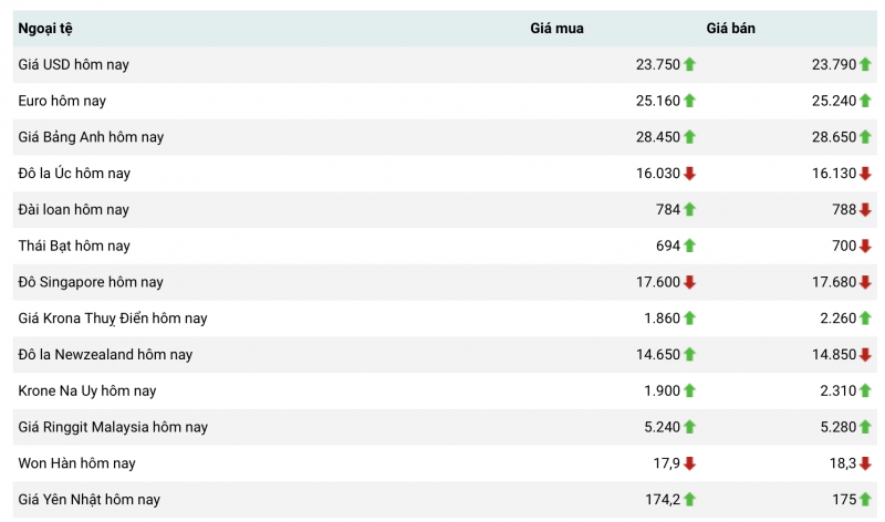 Tỷ giá ngoại tệ thị trường ngày 5/3