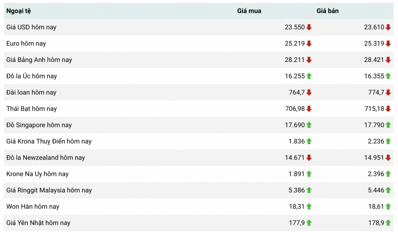Tỷ giá ngoại tệ thị trường trong nước