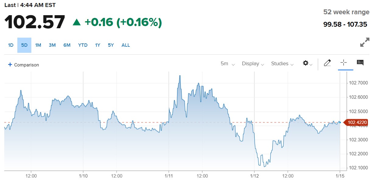 Kỳ vọng của thị trường về việc Cục Dự trữ Liên bang Mỹ (Fed) sẽ sớm cắt giảm lãi suất tăng, bất chấp dữ liệu lạm phát tăng trong tháng 12. Trong bối cảnh này, đồng USD khó có thể phục hồi trở lại, chỉ dao động quanh mức 102 kể từ đầu năm 2024.