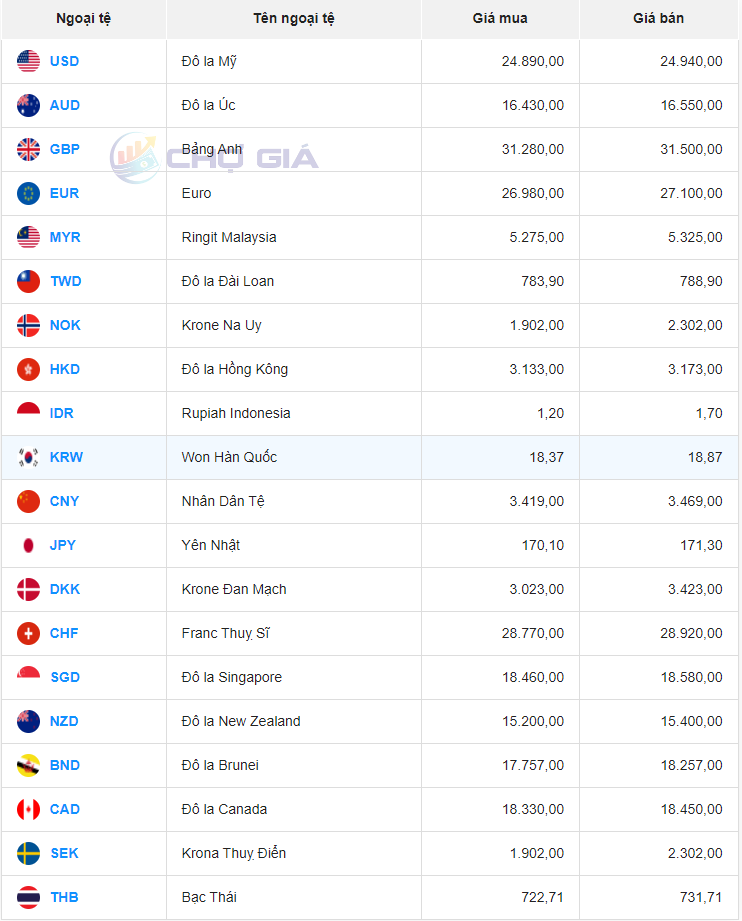 Ngân hàng Tiên Phong mua Won Hàn Quốc (KRW) giá cao nhất là 17.67 VNĐ/KRW. Bán Won Hàn Quốc (KRW) thấp nhất là Ngân hàng Tiên Phong với 19.21 VNĐ một KRW.