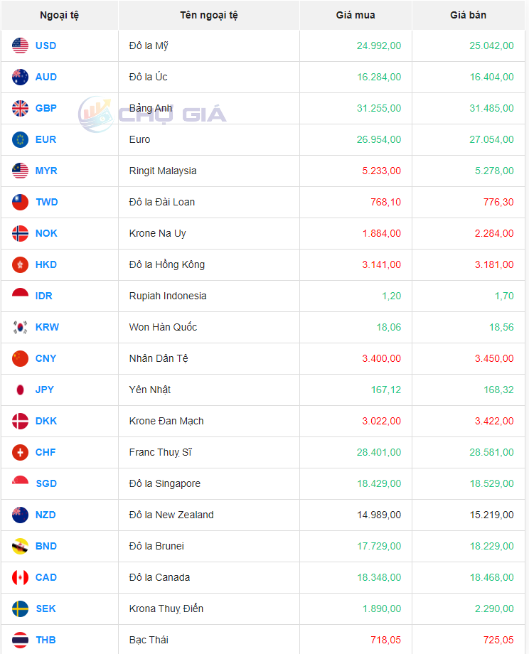 Ngân hàng Tiên Phong mua Won Hàn Quốc (KRW) giá cao nhất là 17.40 VNĐ/KRW. Bán Won Hàn Quốc (KRW) thấp nhất là Ngân hàng Tiên Phong với 18.92 VNĐ một KRW.