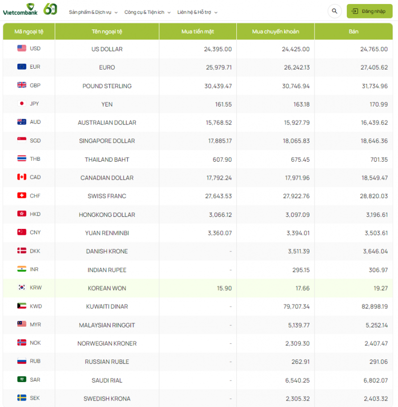 | Tỷ giá Won Hàn Quốc tại Ngân hàng Vietcombank hôm nay 27/1/2024, vào lúc 8 giờ 30 phút |