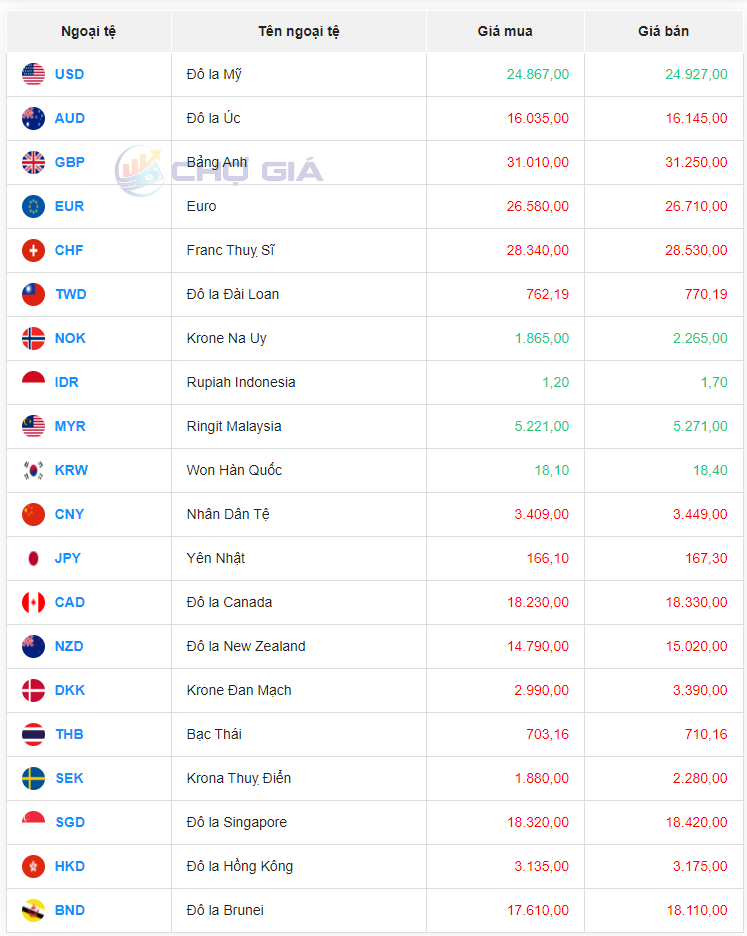 Hôm nay Ngân hàng Tiên Phong mua Won Hàn Quốc (KRW) giá cao nhất là 17,35 VNĐ/KRW. Bán Won Hàn Quốc (KRW) thấp nhất là Ngân hàng Tiên Phong với 18,88 VNĐ một KRW.
