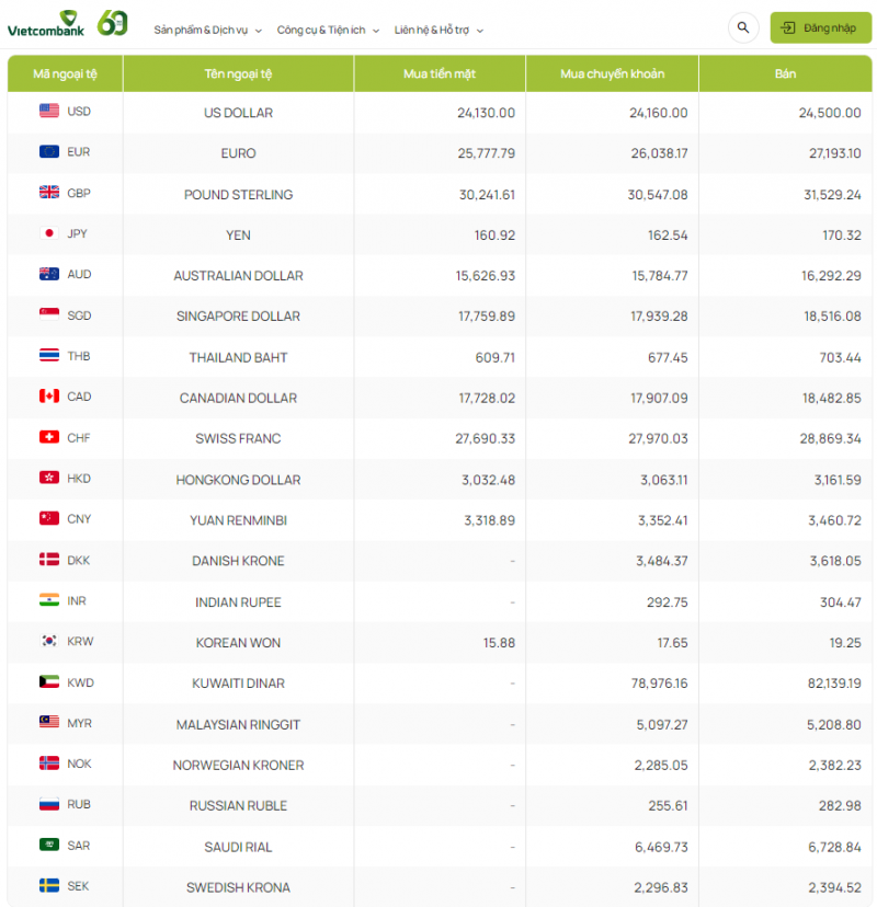 | Tỷ giá Won Hàn Quốc tại Ngân hàng Vietcombank hôm nay 3/2/2024, vào lúc 7 giờ 30 phút |
