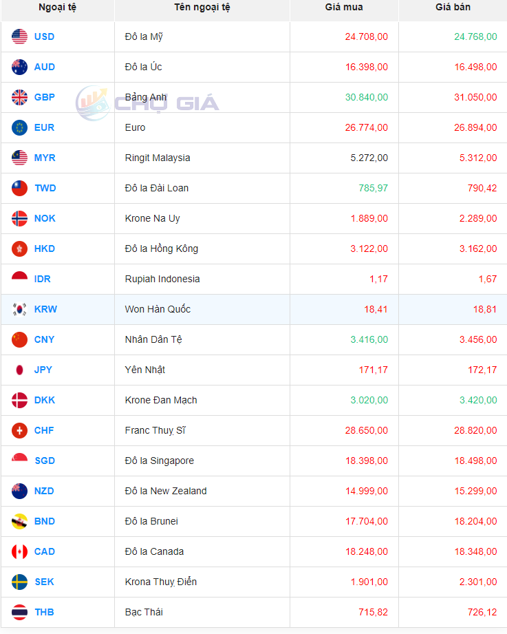 Hôm nay Ngân hàng Tiên Phong mua Won Hàn Quốc (KRW) giá cao nhất là 17.63 VNĐ/KRW. Bán Won Hàn Quốc (KRW) thấp nhất là Ngân hàng Tiên Phong với 19.15 VNĐ một KRW.