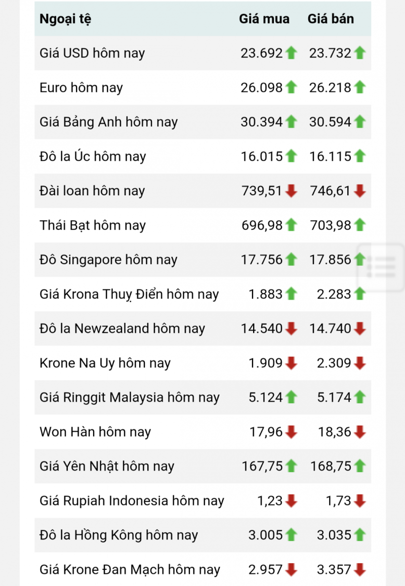 Tỷ giá Won hôm nay 26/7/2023, qua khảo sát các ngân hàng cho thấy, tỷ giá Won mua vào là 15,91 VND/KRW (giảm) và bán ra là 20,50VND/KRW, tăng so với hôm qua.