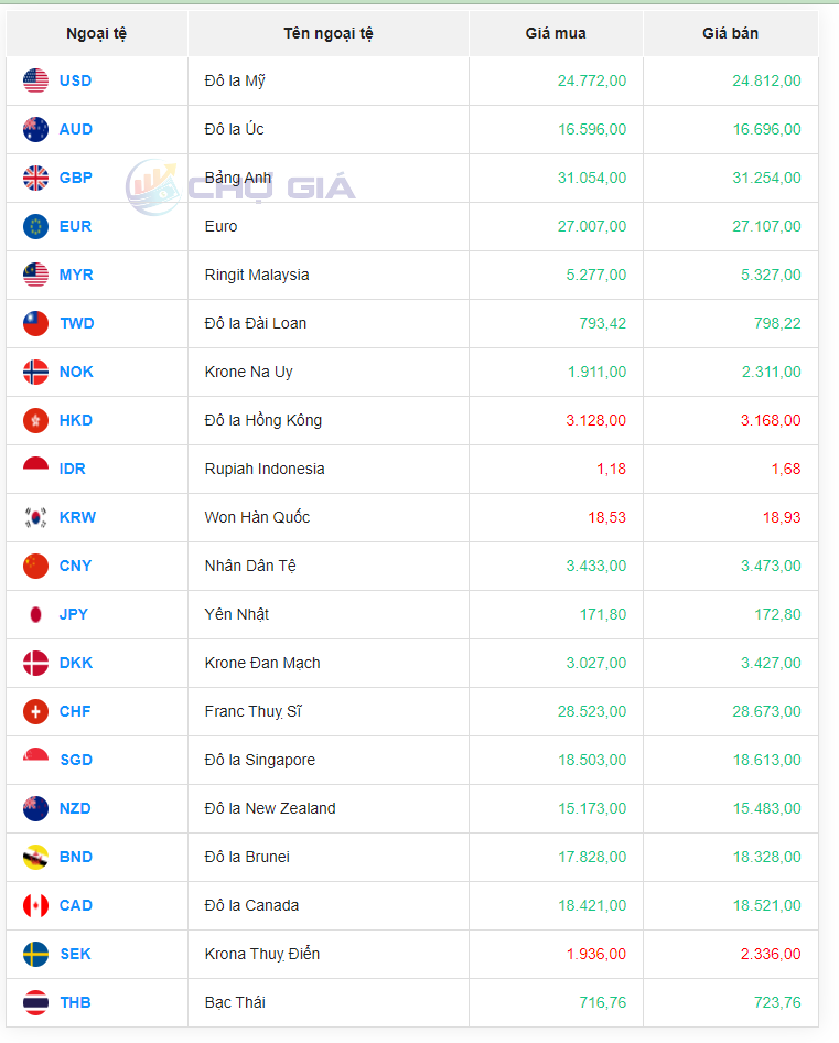 Tỷ giá Won Hàn Quốc hôm nay 27/12/2023 |