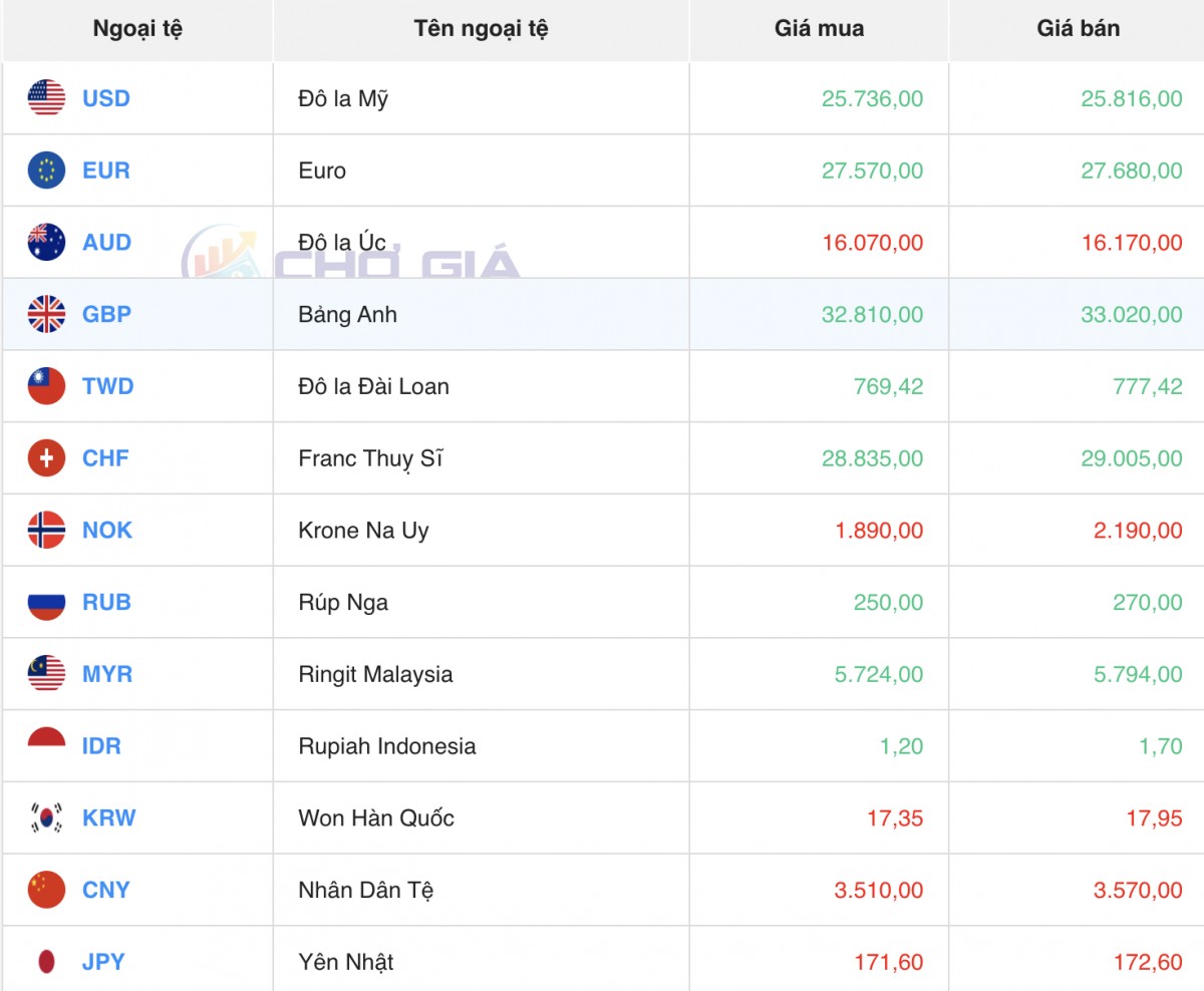Vào lúc 6 giờ sáng ngày 10/3/2025, bảng tổng hợp tỷ giá Yen/VND ở một số ngân hàng như sau: