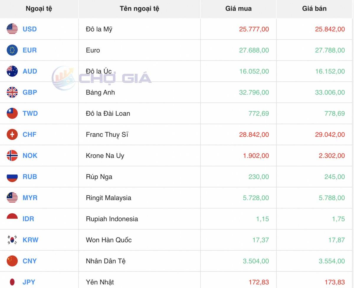 *Ghi chú: Tỷ giá mua - bán tiền mặt | ||