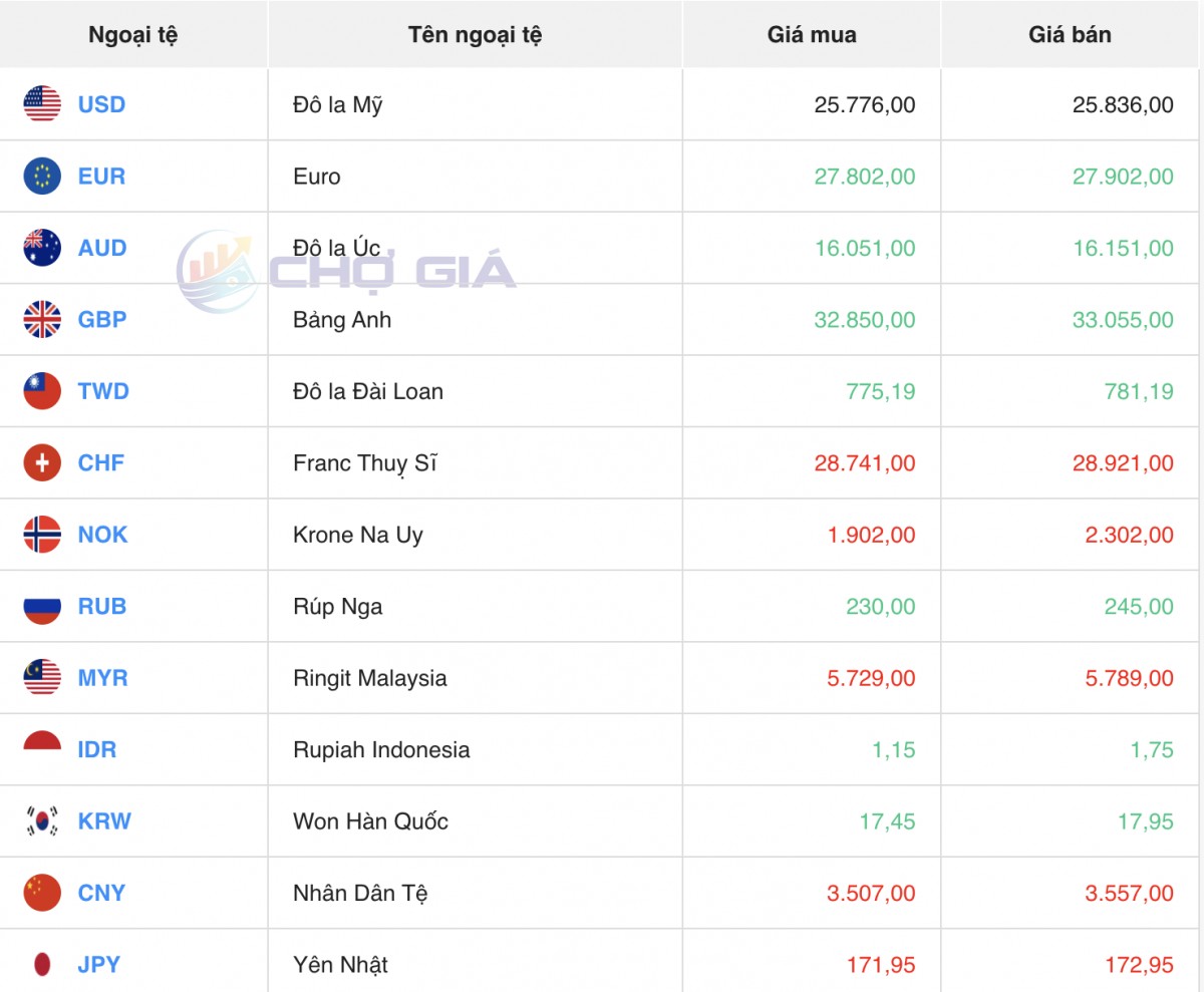 Tại Vietcombank, tỷ giá Yen Nhật Vietcombank có tỷ giá mua là 165,98 VND/JPY và tỷ giá bán là 176,42 VND/JPY.