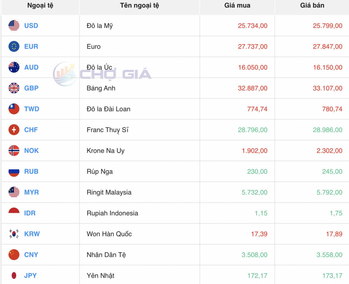 *Ghi chú: Tỷ giá mua - bán tiền mặt | ||