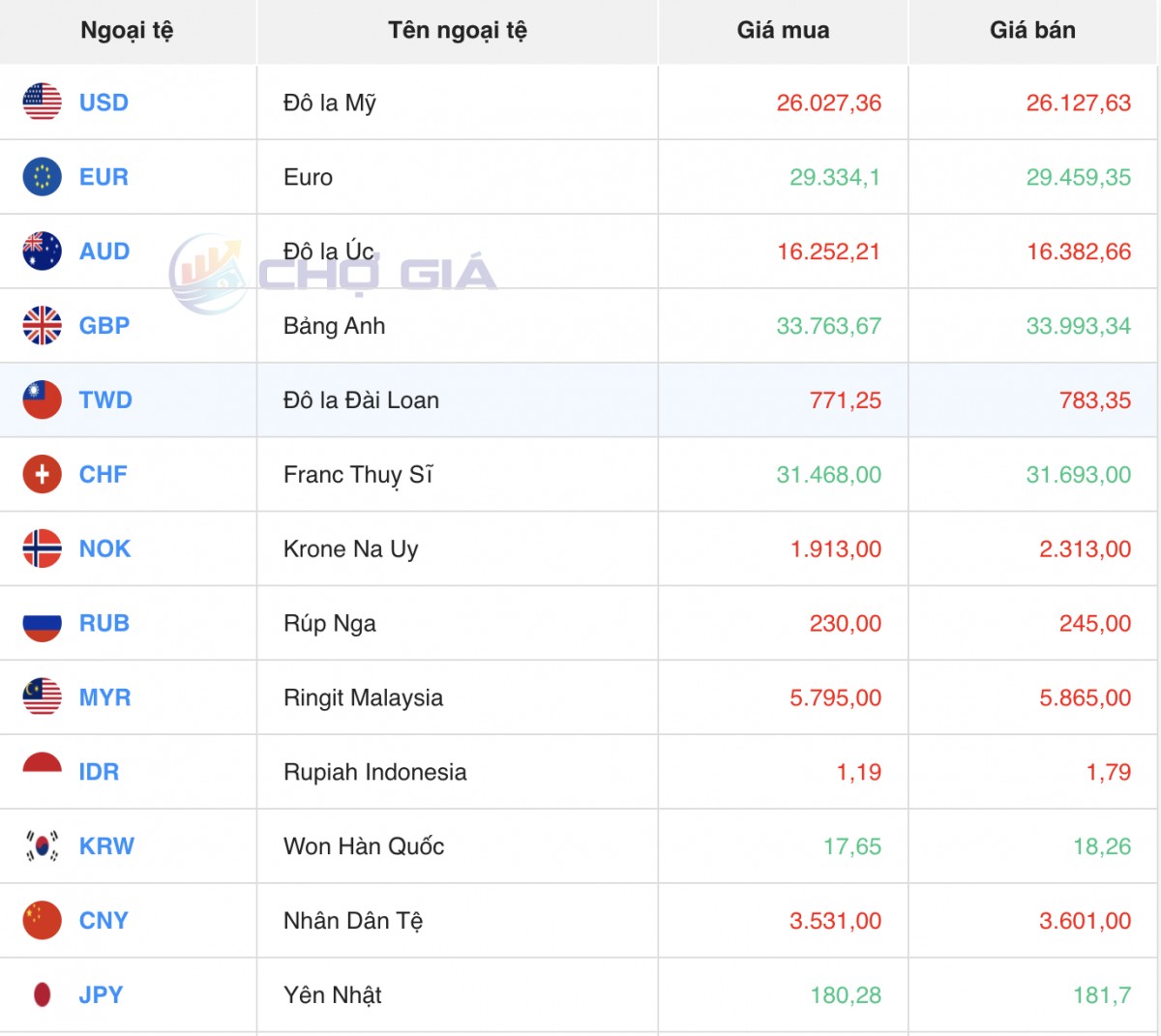 Ngân hàng | Mua | Bán |