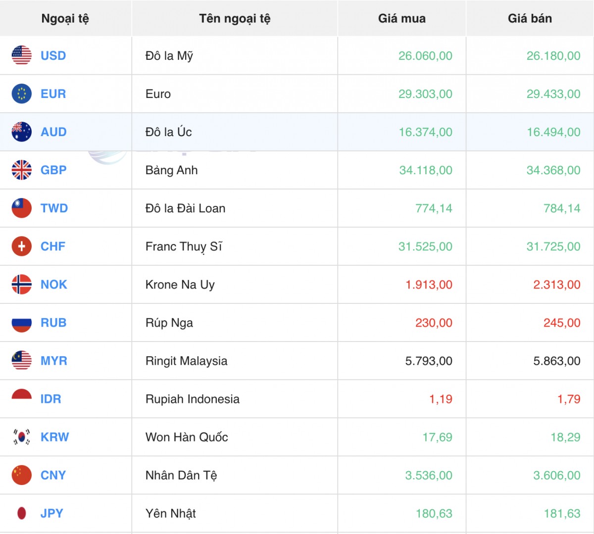 *Ghi chú: Tỷ giá mua - bán tiền mặt