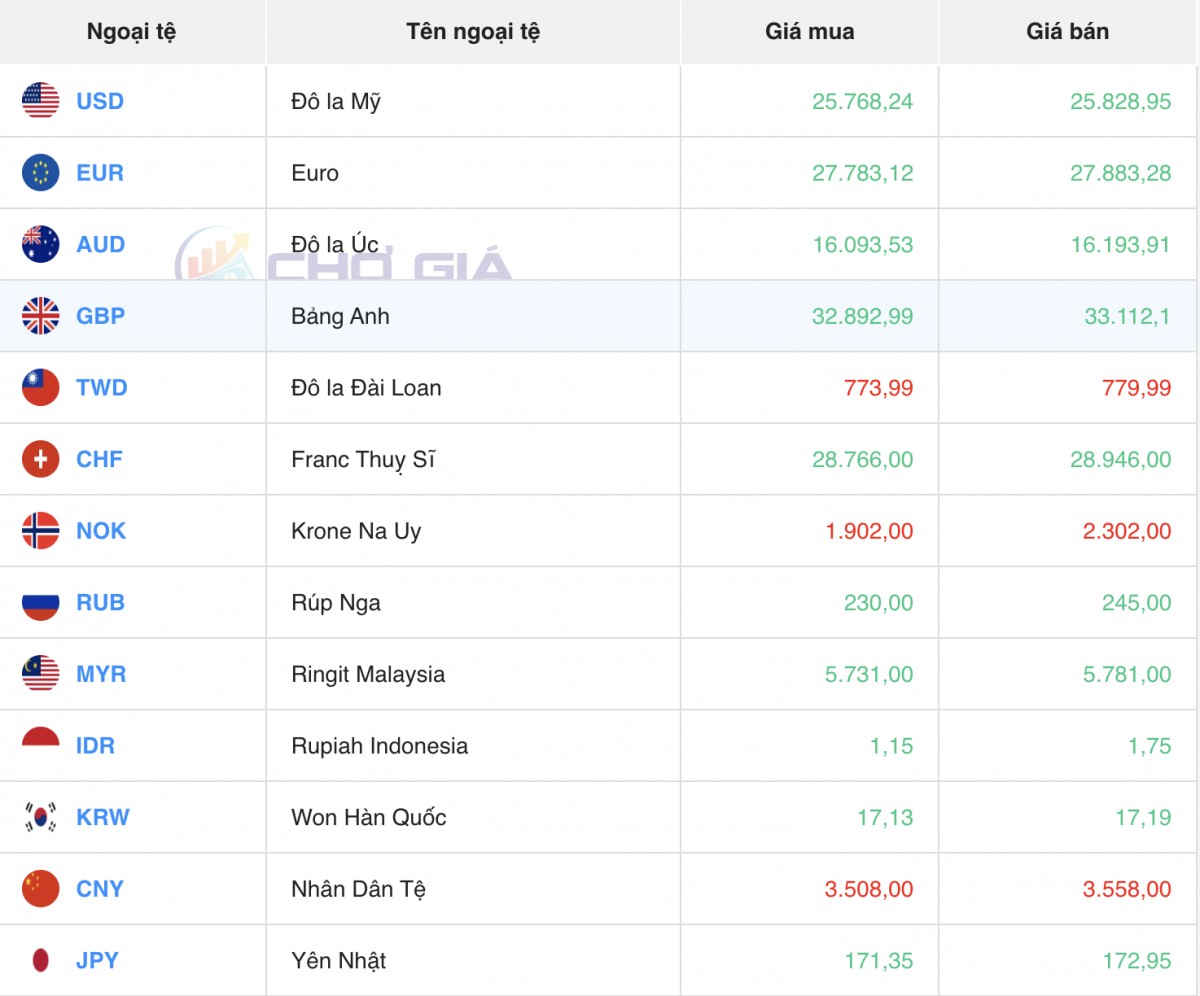 *Ghi chú: Tỷ giá mua - bán tiền mặt | ||