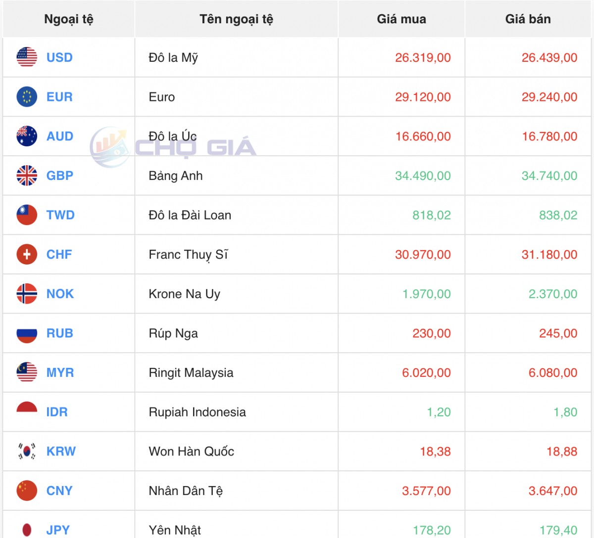 Ngân hàng | Mua | Bán |