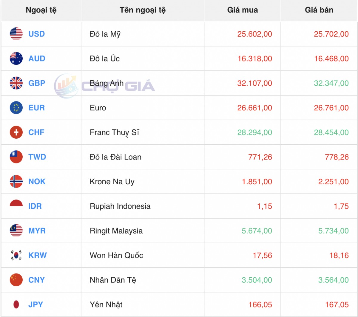 *Ghi chú: Tỷ giá mua - bán tiền mặt