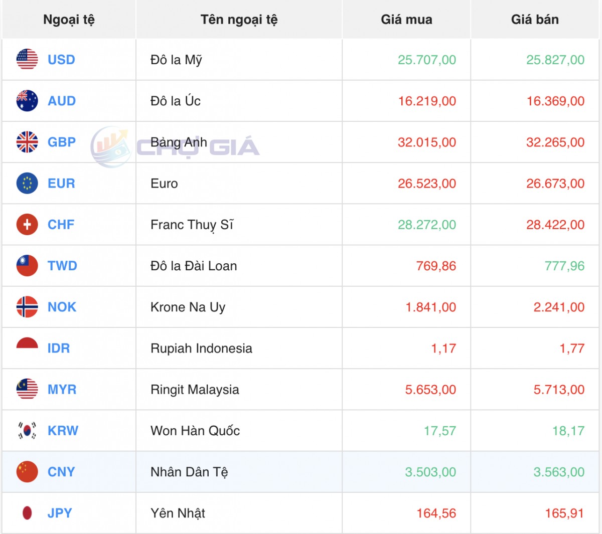 Ngân hàng | Mua | Bán | Mua | Bán |