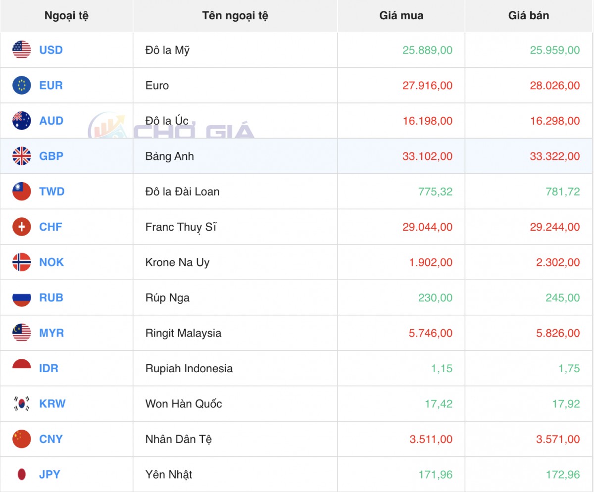 *Ghi chú: Tỷ giá mua - bán tiền mặt