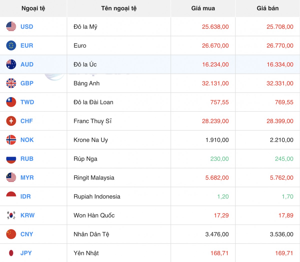 Vào lúc 6 giờ sáng ngày 22/2/2025, bảng tổng hợp tỷ giá Yen/VND ở một số ngân hàng như sau: