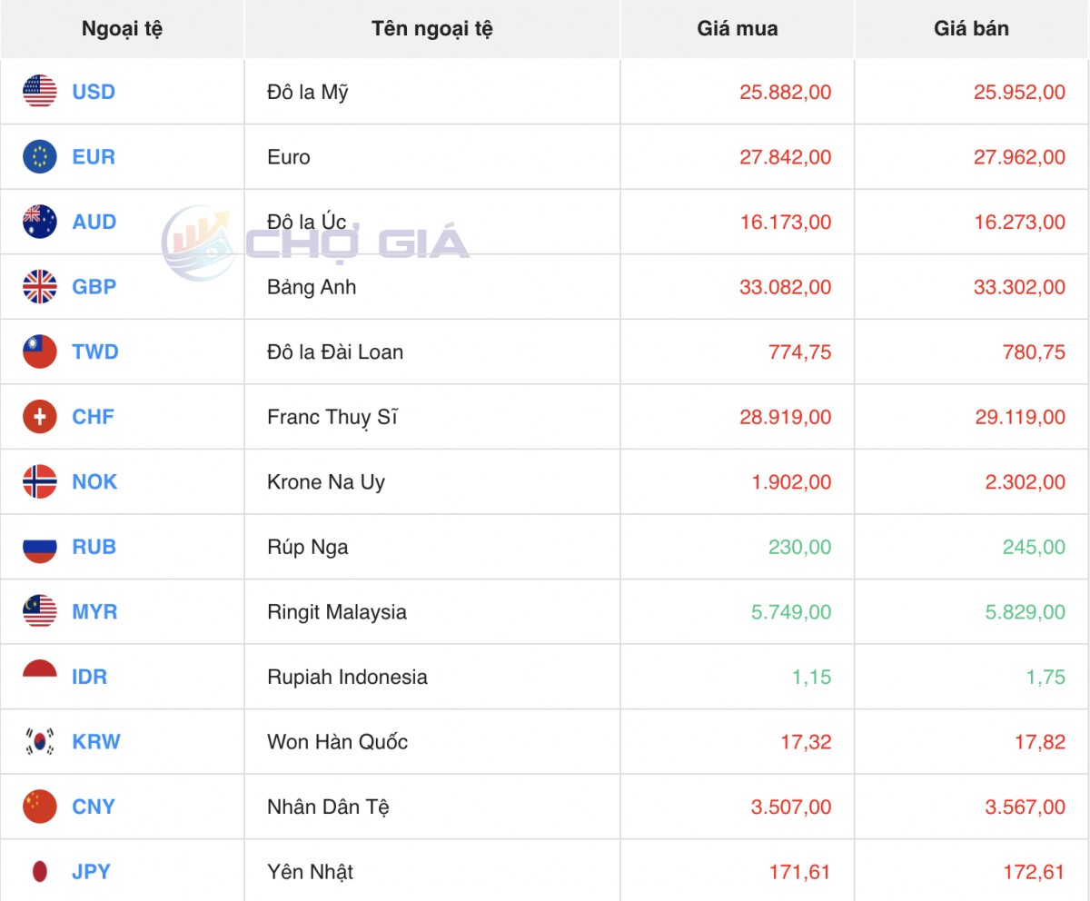 *Ghi chú: Tỷ giá mua - bán tiền mặt | ||