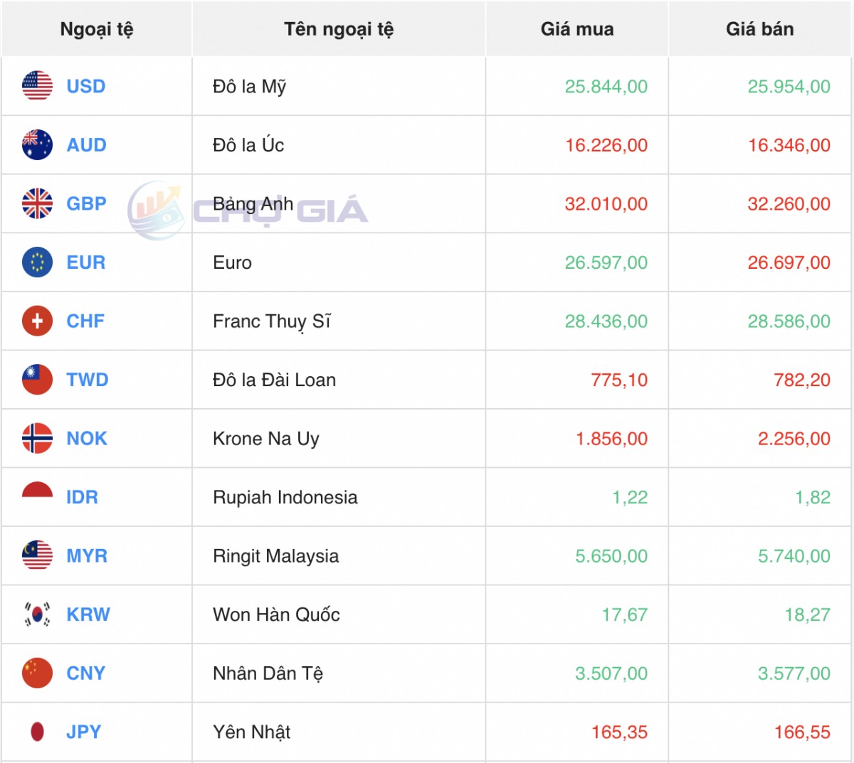 Ngân hàng | Mua | Bán | Mua | Bán |