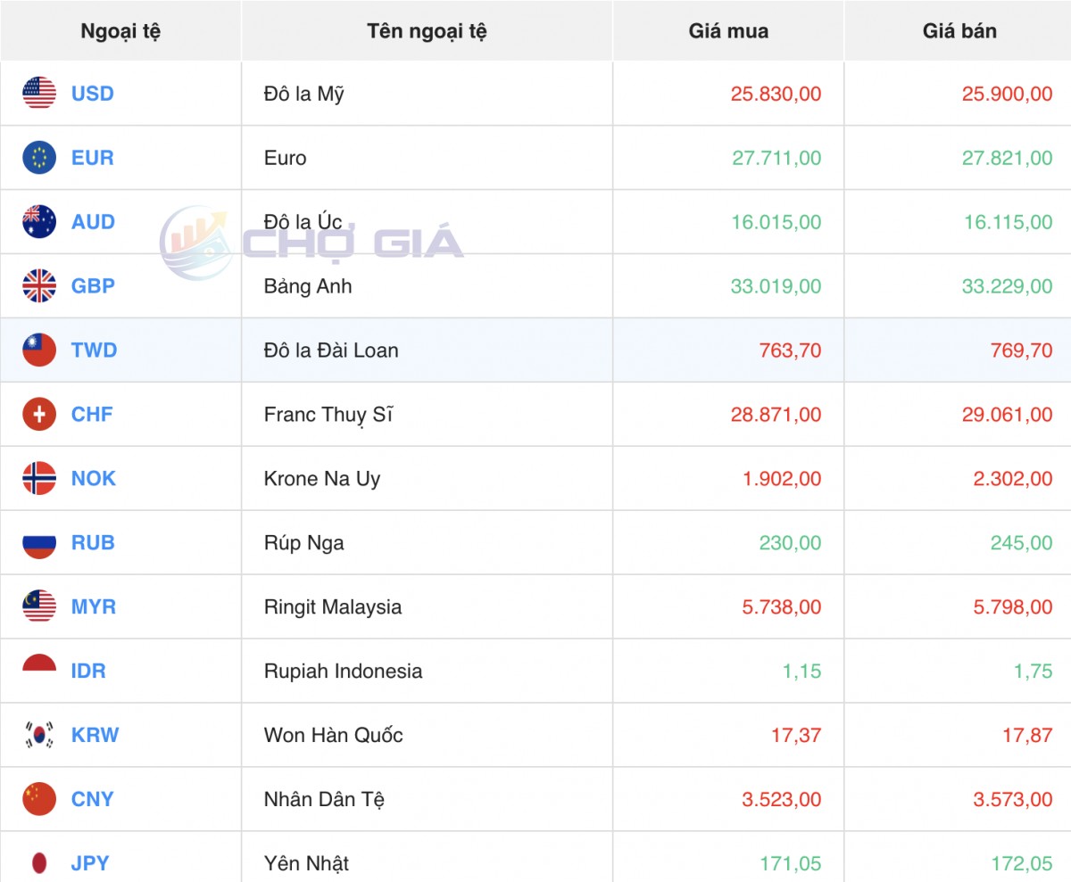 Vào lúc 6 giờ sáng ngày 2/4/2025, bảng tổng hợp tỷ giá Yen/VND ở một số ngân hàng như sau: