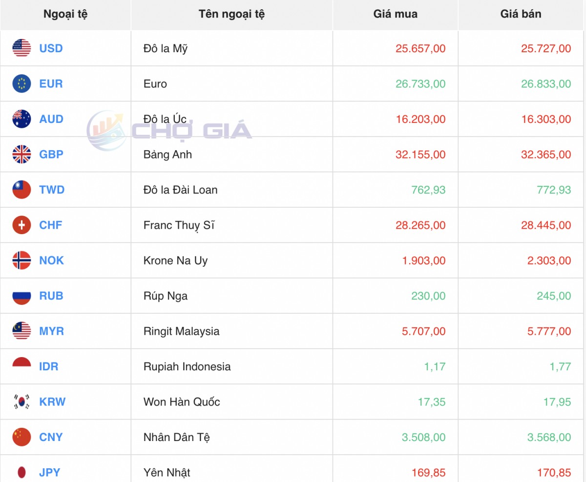 Vào lúc 6 giờ sáng ngày 25/2/2025, bảng tổng hợp tỷ giá Yen/VND ở một số ngân hàng như sau: