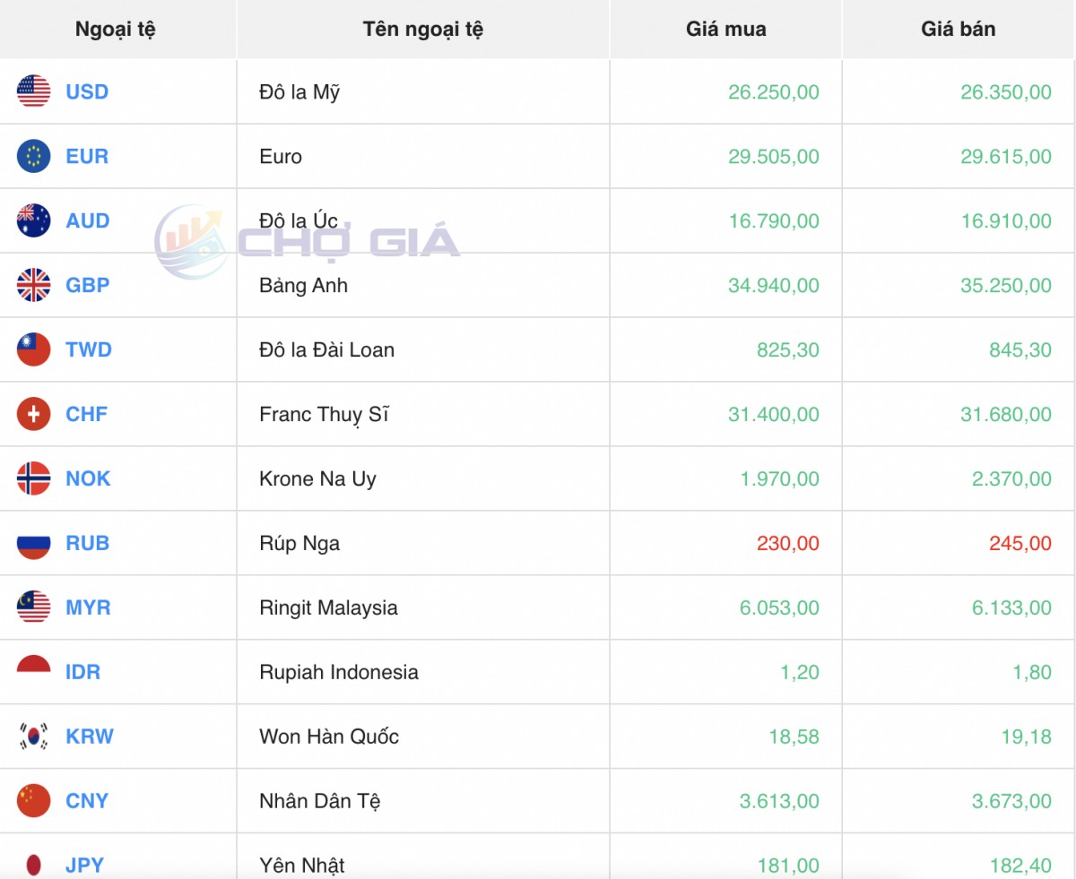Vào lúc 5 giờ sáng ngày 25/5/2025, bảng tổng hợp tỷ giá Yen/VND ở một số ngân hàng như sau: