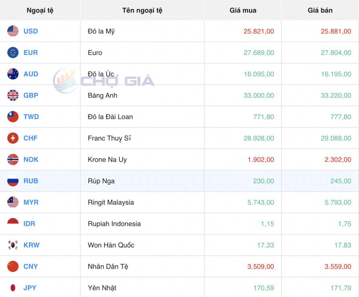 Vào lúc 6 giờ sáng ngày 26/3/2025, bảng tổng hợp tỷ giá Yen/VND ở một số ngân hàng như sau: