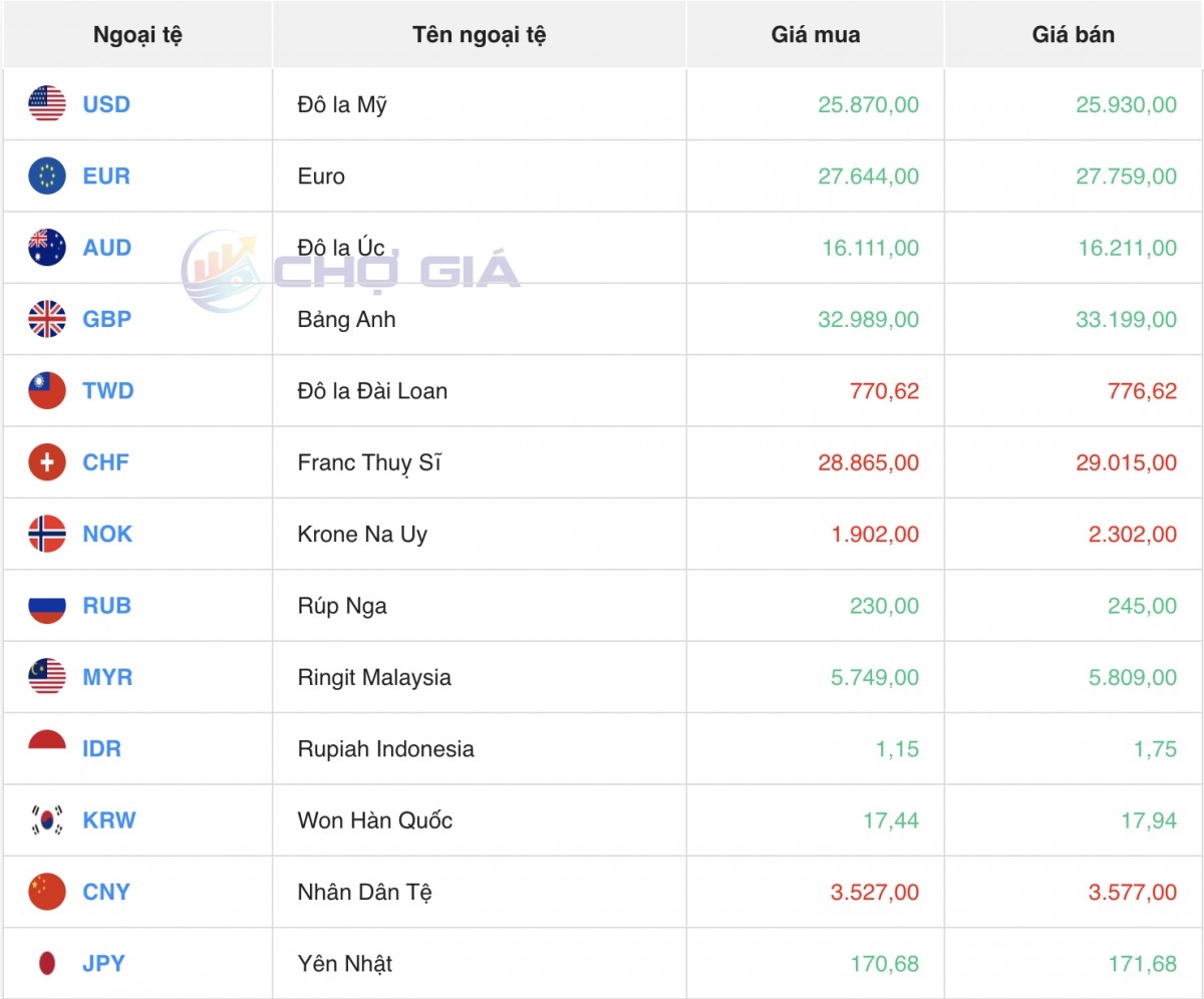 Tại Vietcombank, tỷ giá Yen Nhật Vietcombank có tỷ giá mua là 164,09 VND/JPY và tỷ giá bán là 174,52 VND/JPY.