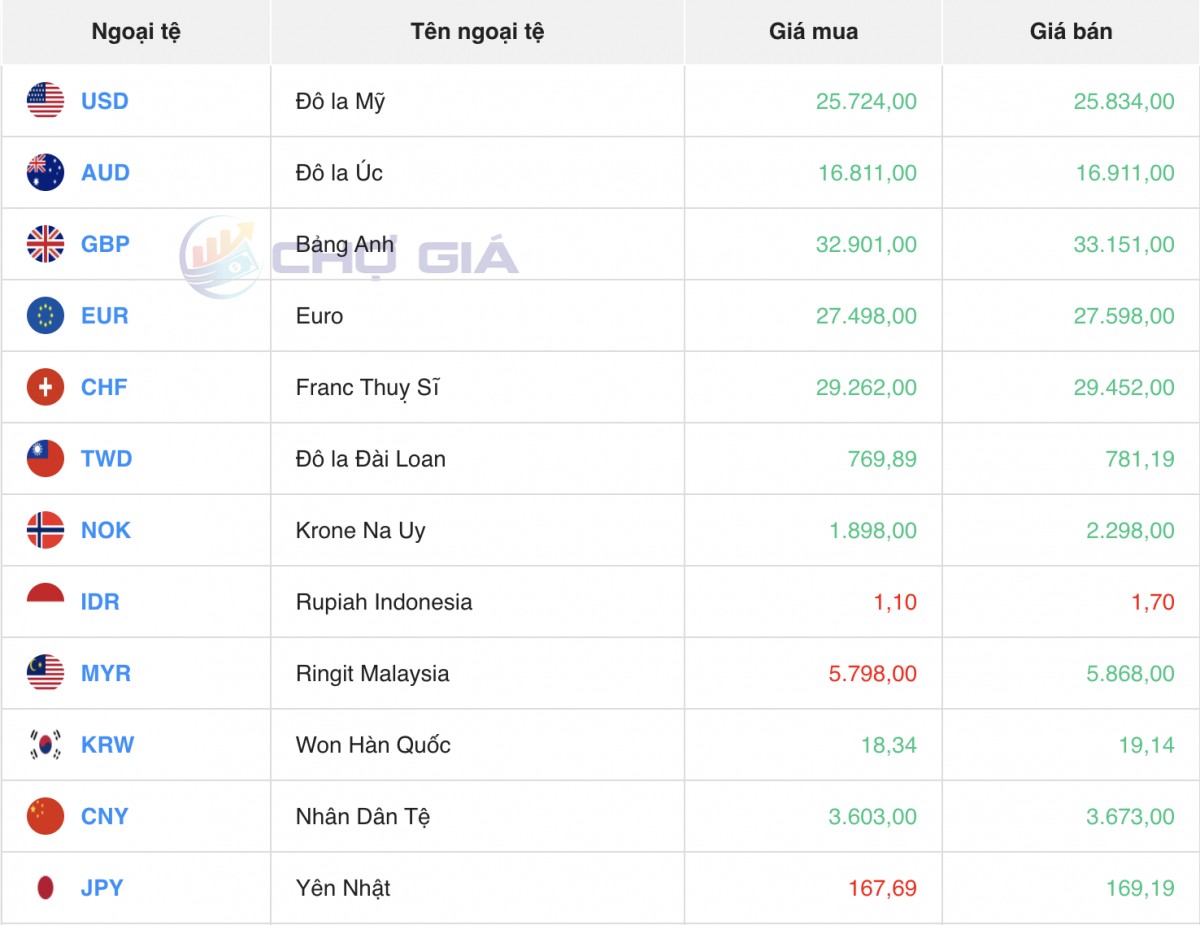 Ngân hàng | Mua | Bán | Mua | Bán |