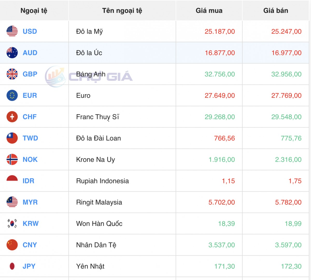 Ngân hàng | Mua | Bán | Mua | Bán |