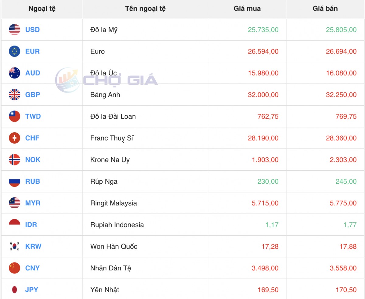 Tại Vietcombank, tỷ giá Yen Nhật Vietcombank có tỷ giá mua là 163,73 VND/JPY và tỷ giá bán là 174,14 VND/JPY.