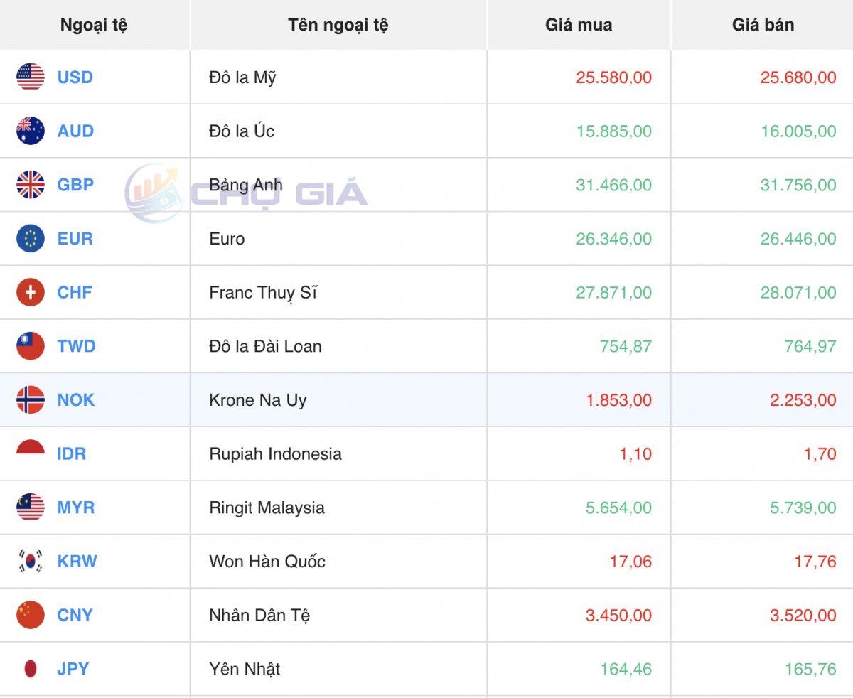 Tại Vietcombank, tỷ giá Yen Nhật Vietcombank có tỷ giá mua là 158,48 VND/JPY và tỷ giá bán là 168,55 VND/JPY.