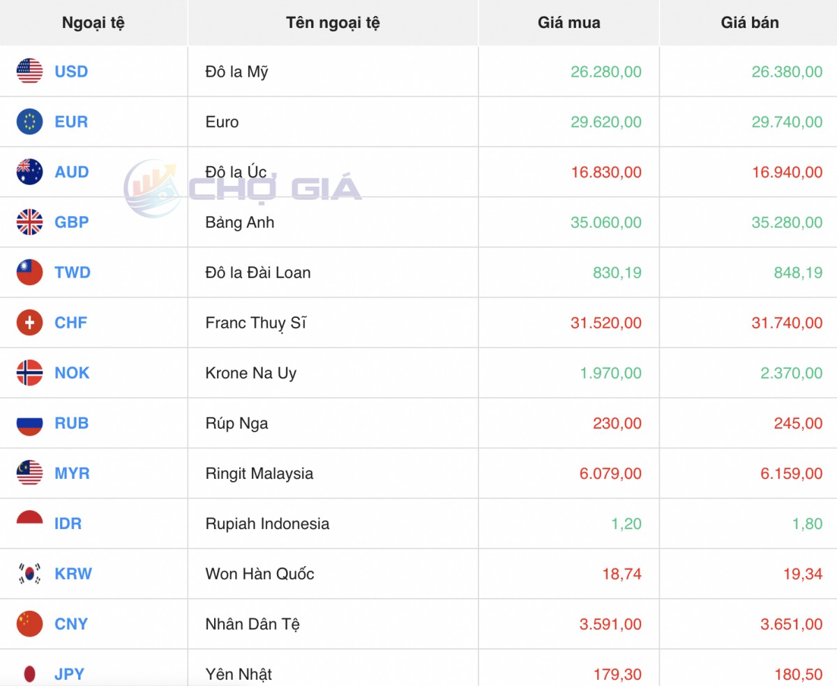 *Ghi chú: Tỷ giá mua - bán tiền mặt | ||