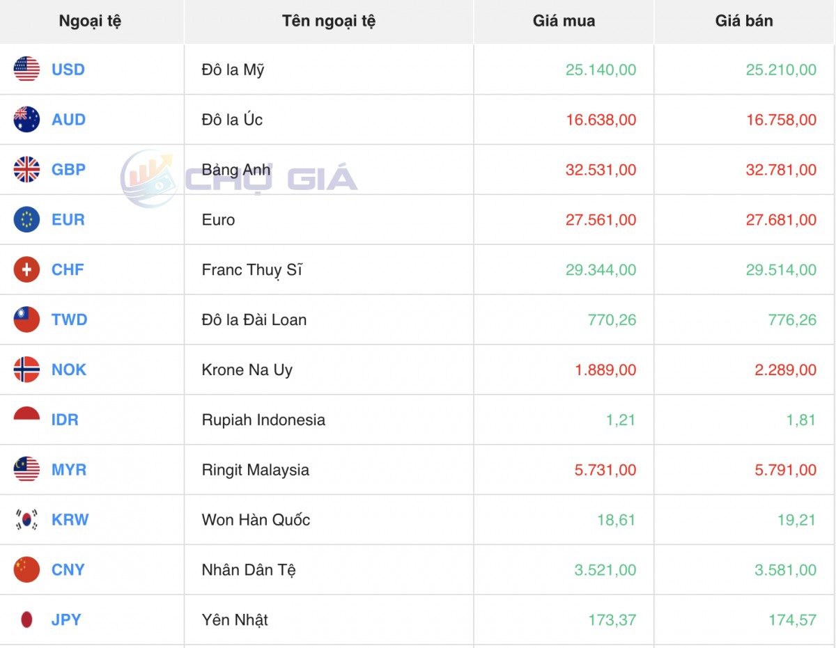 Ngân hàng | Mua | Bán | Mua | Bán |