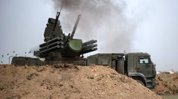 Hệ thống phòng không Pantsir-S1 của Nga khai hỏa dữ dội. Ảnh: RT |