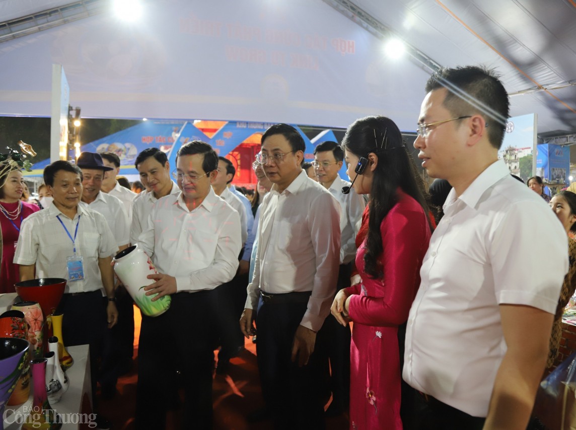 | Các đại biểu tham quan gian hàng tại hội chợ |
