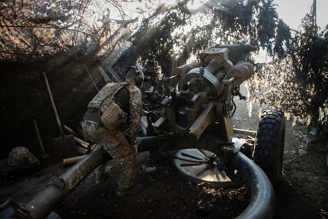 | Lính Ukraine nã hỏa lực về phía lực lượng Nga. Ảnh: New York Times |