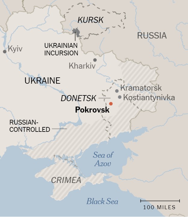 | Cuộc đột kích của Ukraine tại Kursk không làm Nga giảm bớt các cuộc tấn công vào Pokrovsk. Ảnh: New York Times |