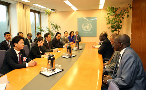Sáng cùng ngày, Phó Thủ tướng Vương Đình Huệ làm việc chung với lãnh đạo của trên 10 tổ chức quốc tế ở Geneve, trong đó ngoài Tổng Thư ký UNCTAD, còn có sự hiện diện của Tổng Thư ký Liên minh Nghị viện thế giới (IPU), Trung tâm Thương mại thế giới (ITC) và nhiều tổ chức khác.