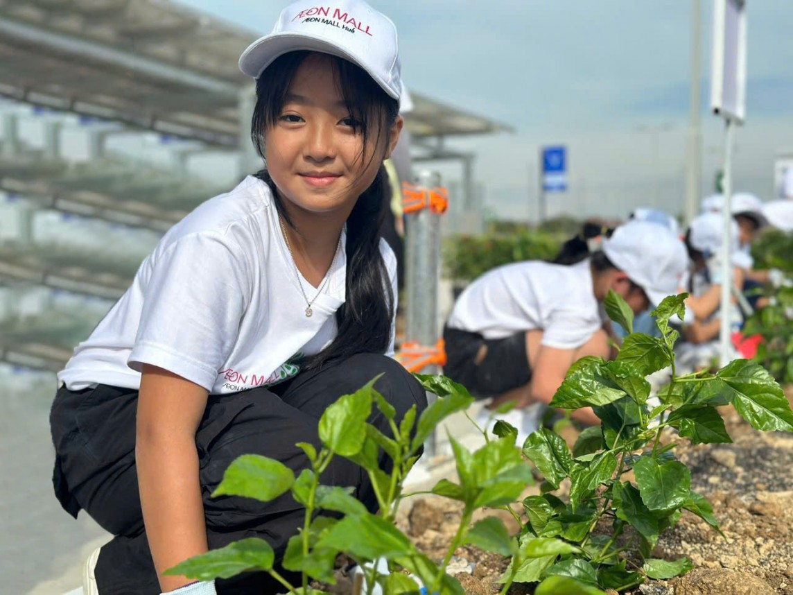 | Các em học sinh tiểu học hào hứng tham gia lễ trồng cây. Ảnh: AEON MALL |