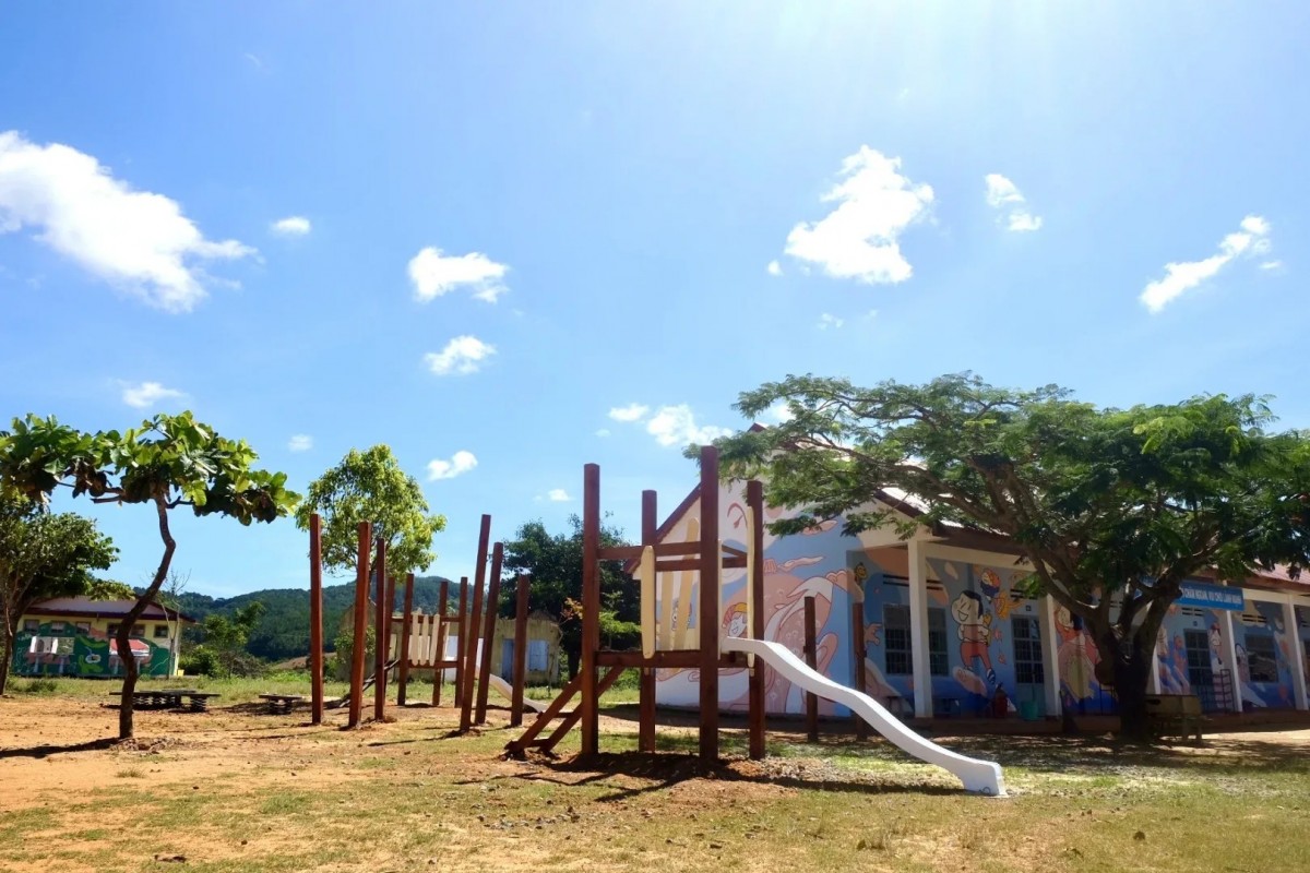 | Sân chơi đầu tiên của dự án Sân chơi Cầu Vồng tại Trường tiểu học Chơ Ré, điểm trường thôn Ma Bó, tỉnh Lâm Đồng. Ảnh nhân vật cung cấp |