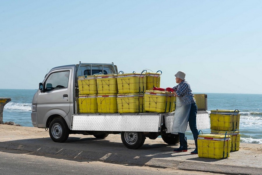 | Phần sàn thùng của Suzuki Carry Pro được làm từ thép tấm mạ kẽm chống ăn mòn rỉ sét phù hợp để vận chuyển hải sản |