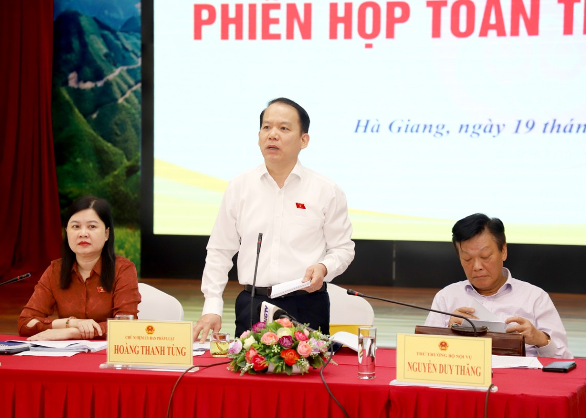 Đồng chí Hoàng Thanh Tùng, Ủy viên BCH Trung ương Đảng, Ủy viên Ủy ban Thường vụ Quốc hội, Chủ nhiệm Ủy ban Pháp luật Quốc hội chủ trì phiên họp. Tham dự có các đồng chí Phó Chủ nhiệm Ủy ban Pháp luật, lãnh đạo Bộ Nội vụ, Thường trực UBND các tỉnh Sóc Trăng, Nam Định, Tuyên Quang.