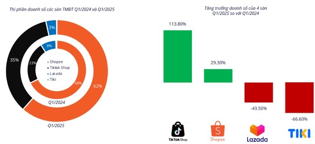 | Thị phần doanh số 4 sàn thương mại điện tử trong quý I/2025. Ảnh: Metric |