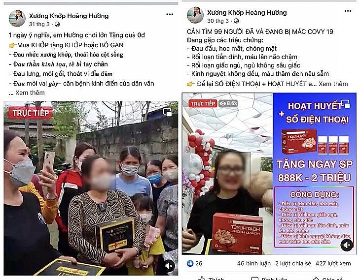 Trong các video quảng cáo, bà Hoàng Hường đánh vào tâm lý người tiêu dùng bằng những xấp tiền xanh đỏ, hình ảnh một doanh nhân thường xuyên đi làm từ thiện, giúp đỡ người nghèo, rồi bán hàng cho chính các đối tượng này theo kiểu “mua 1 tặng 2”, “mua 2 tặng 4”, có khi tặng cả tiền.