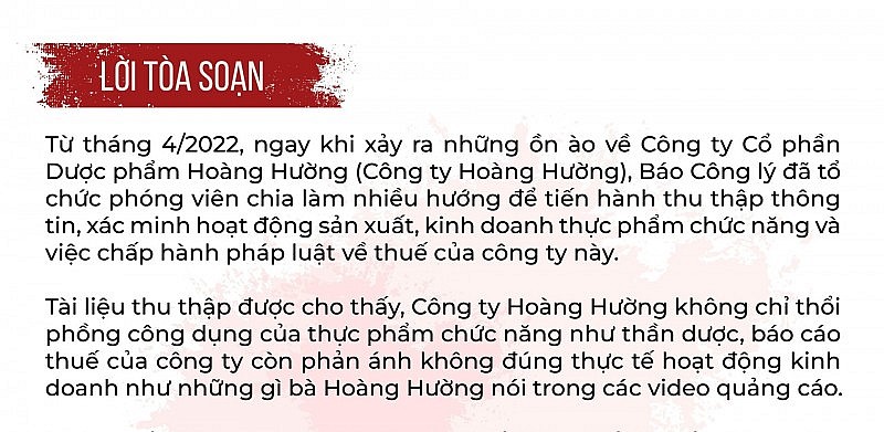 Để tăng thêm độ uy tín và niềm tin với người tiêu dùng, trong các video quảng cáo, bà Hoàng Hường nói đã bỏ ra 100 tỷ đồng mua công thức xương khớp, có 4 nhà máy sản xuất và 2.000 nhân viên, dù Công ty Hoàng Hường mới chỉ được “khai sinh” vào tháng 8/2021, với vốn điều lệ vỏn vẹn 6 tỷ đồng.
