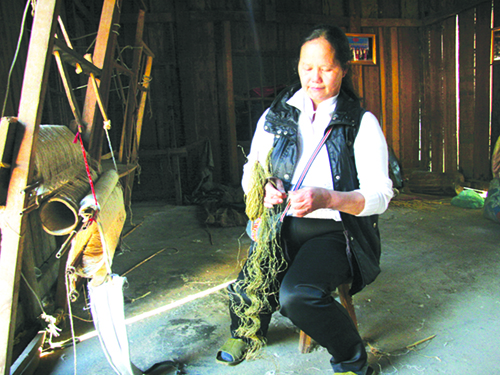 Cuốn theo câu chuyện của anh, chúng tôi đến Lùng Tám vừa vặn được chứng kiến vạt nắng hiếm hoi chiều cuối đông nhuốm vàng thôn xóm. Nở nụ cười hồn hậu, chất phác bà Vàng Thị Mai - chủ nhiệm Hợp tác xã (HTX) lanh Hợp Tiến chào đón chúng tôi. Bà đưa chúng tôi đi xem dãy nhà sản xuất của htx, xem khu thiết kế, cắt may sản phẩm, nói cho chúng tôi biết quy trình từ trồng lanh cho đến sản xuất ra sản phẩm…