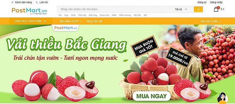 | Vải thiều Bắc Giang được kinh doanh trên sàn Postmart |
